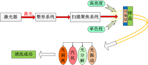 今的制造業(yè)發(fā)展迅猛,各種機(jī)械、電子產(chǎn)品的應(yīng)用規(guī)模均大為增長(zhǎng)。但這些設(shè)備在裝配之前以及運(yùn)行一段時(shí)間之后,都需要進(jìn)行一些維護(hù),其中就包括對(duì)部分材料或部件進(jìn)行清洗。傳統(tǒng)的清洗工藝如機(jī)械摩擦清洗、化學(xué)腐蝕清洗、強(qiáng)力沖擊清洗、高頻超聲清洗等,非常耗時(shí),無(wú)法實(shí)現(xiàn)自動(dòng)化,而且通常對(duì)環(huán)境造成有害影響。同時(shí),也沒(méi)有測(cè)量清潔效果的可靠方法。與之相比,激光清洗具有無(wú)污染、無(wú)消耗品、成本低、效率高、無(wú)接觸、無(wú)應(yīng)力、無(wú)損傷、可控性好、可選區(qū)精密清洗、可清洗難以到達(dá)的危險(xiǎn)的區(qū)域等優(yōu)點(diǎn),被認(rèn)為是未來(lái)最可靠、最有效的解決清洗問(wèn)題的辦法。